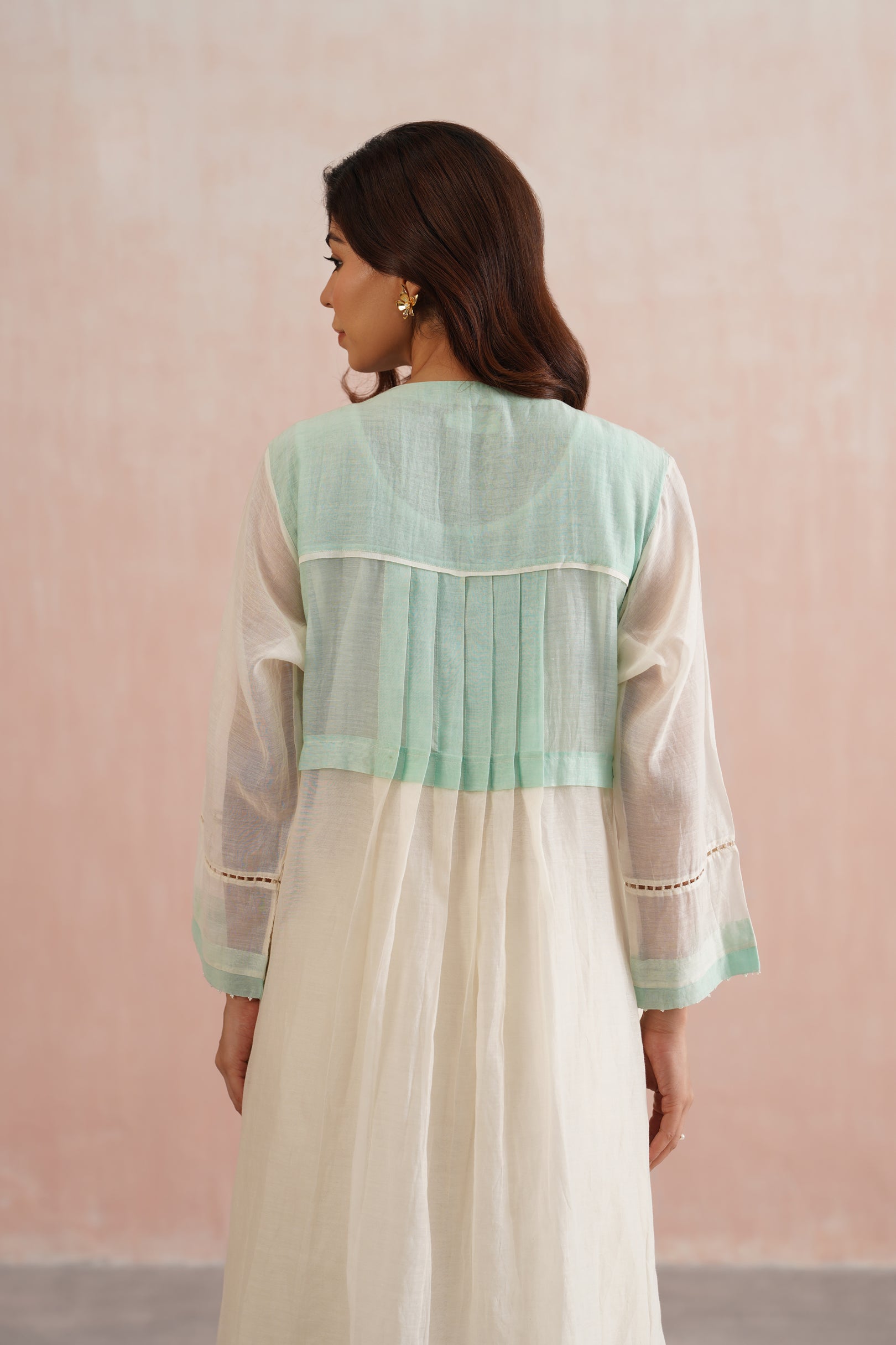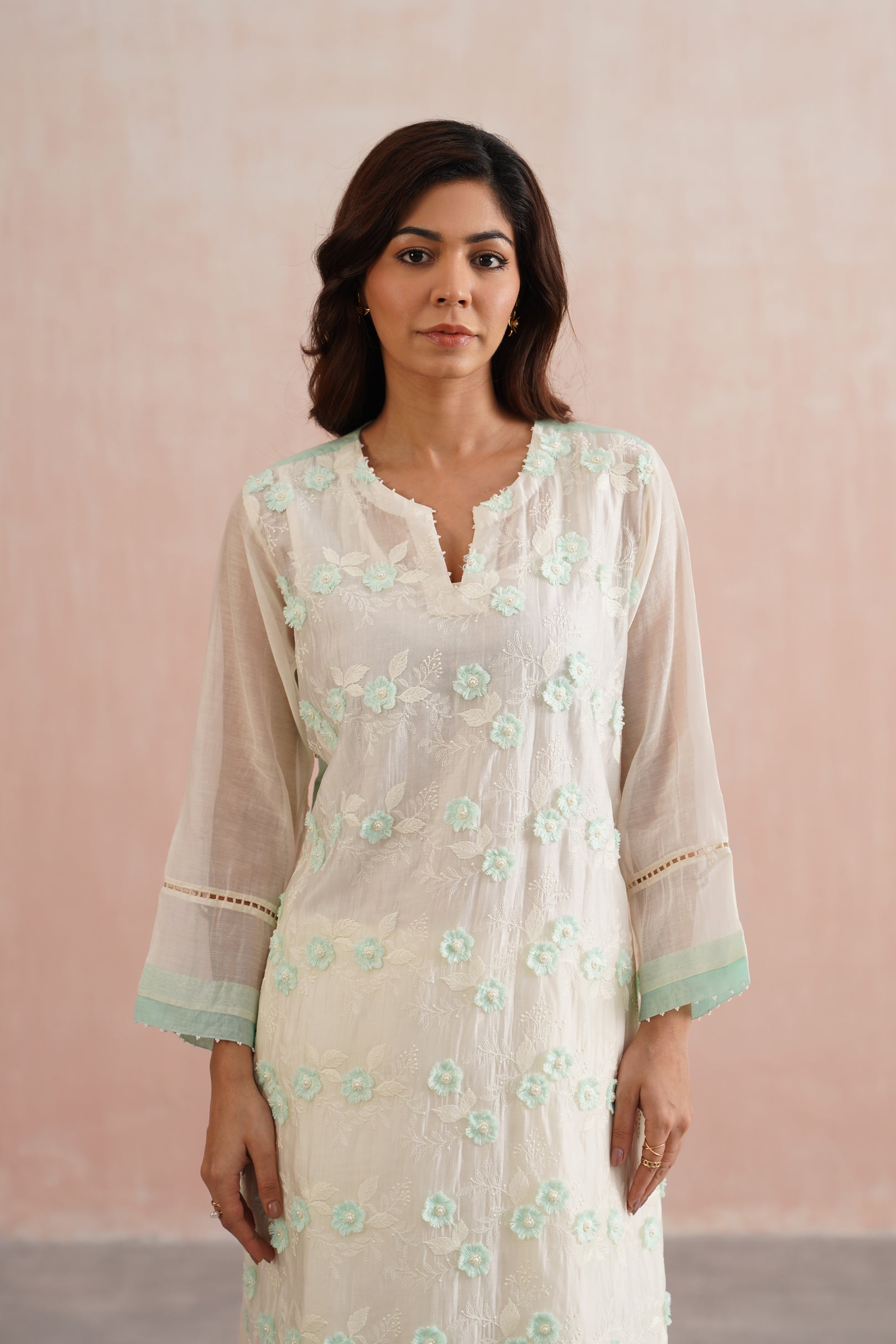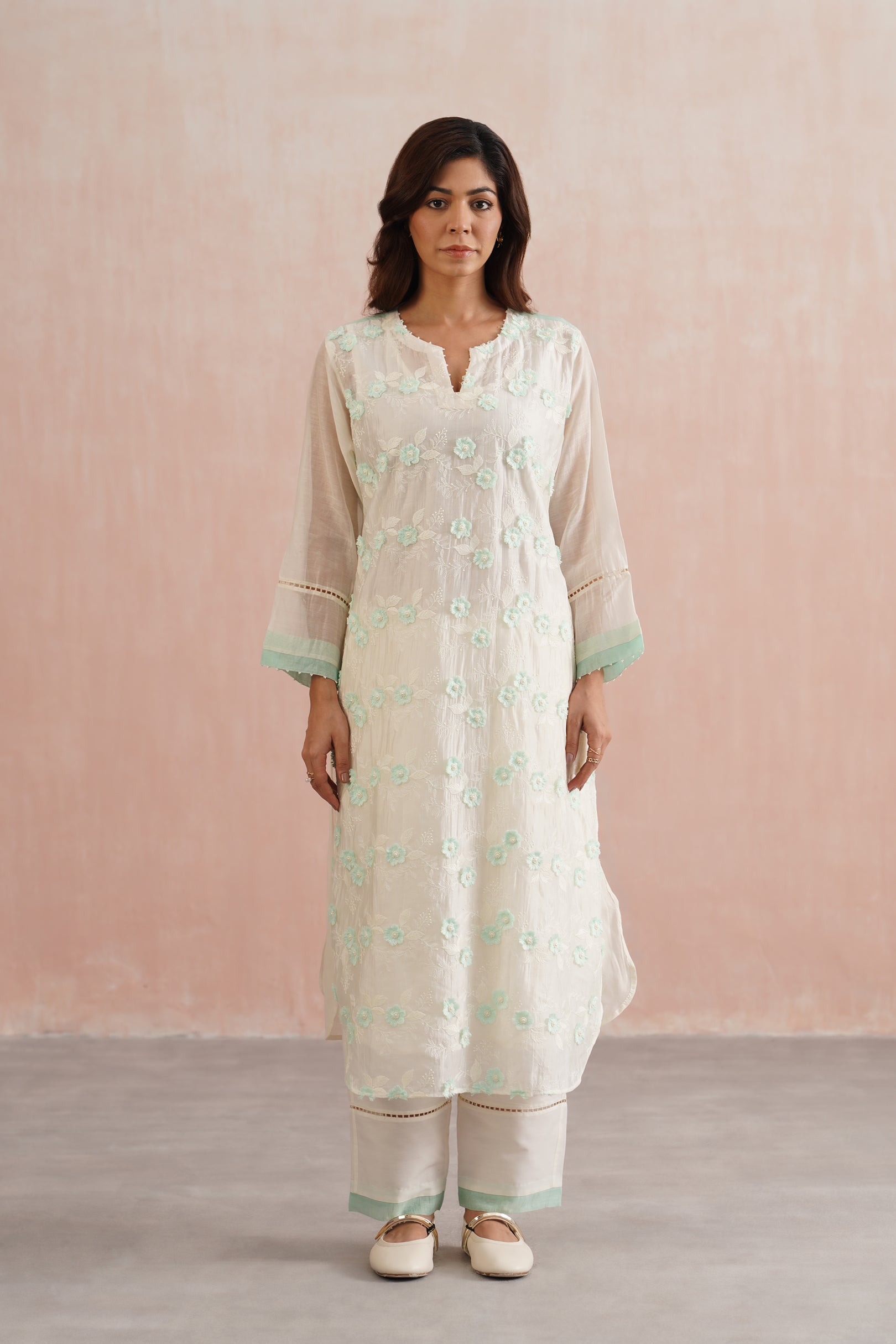 Mul chanderi pearl embroidered kurta paired with cotton pants