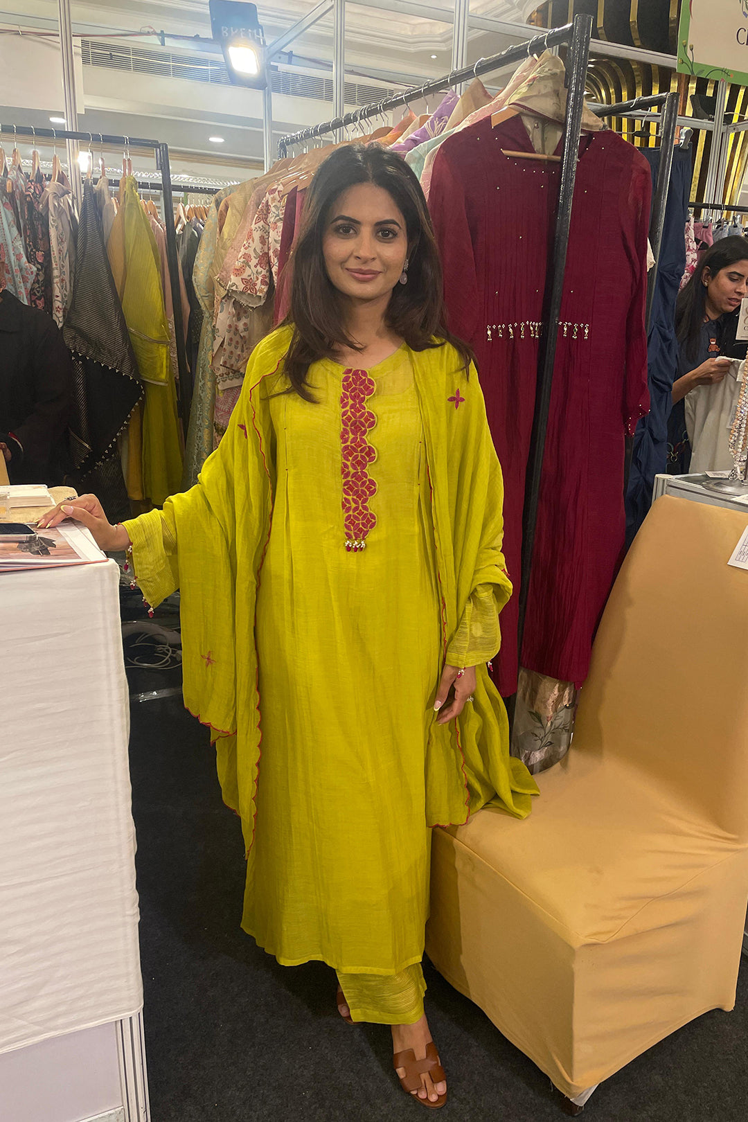Mul chanderi beadwork kurta paired with cotton chanderi pants and mul chanderi embroidered dupatta